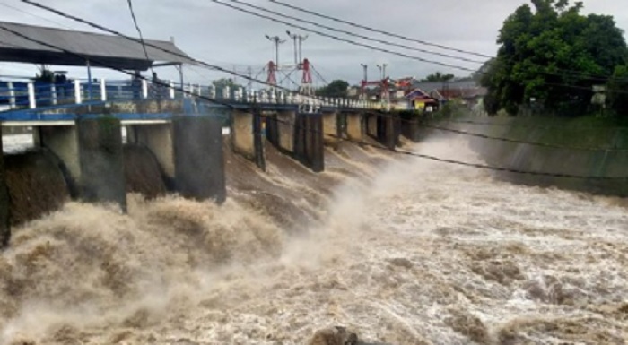 Curah hujan yang sangat lebat di wilayah Puncak dan sekitarnya menyebabkan tingkat ketinggian air di Bendung Katulampa, Kota Bogor, Jawa Barat, meningkat hingga mencapai 110 sentimeter, yang berstatus pada level siaga 3.